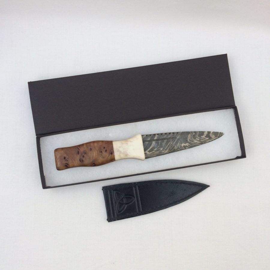 Burr Wych Elm and Antler Damascus Sgian Dubh Gallery