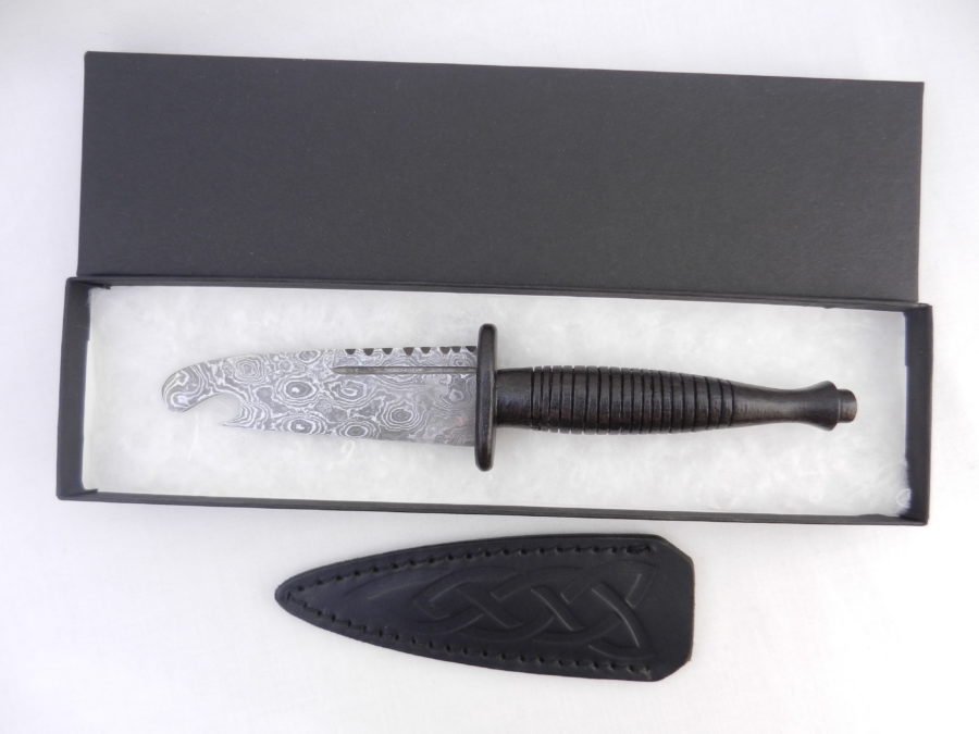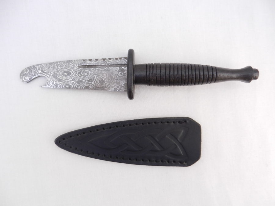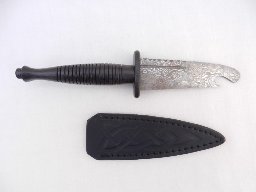 Fairbairn-Sykes Damascus Sgian Brew in African Blackwood and Indian Rosewood Gallery